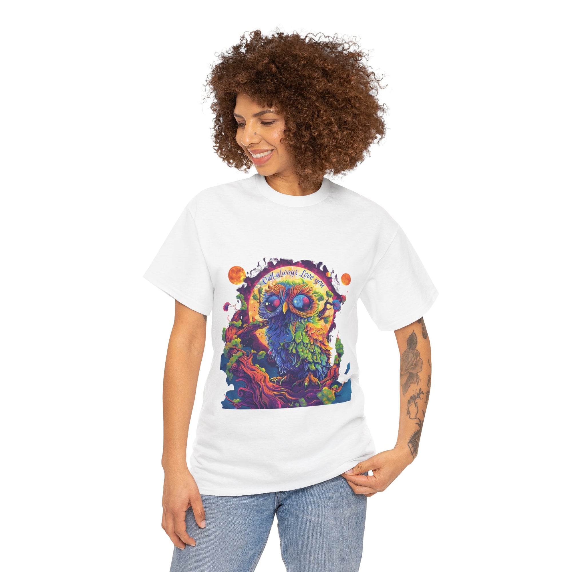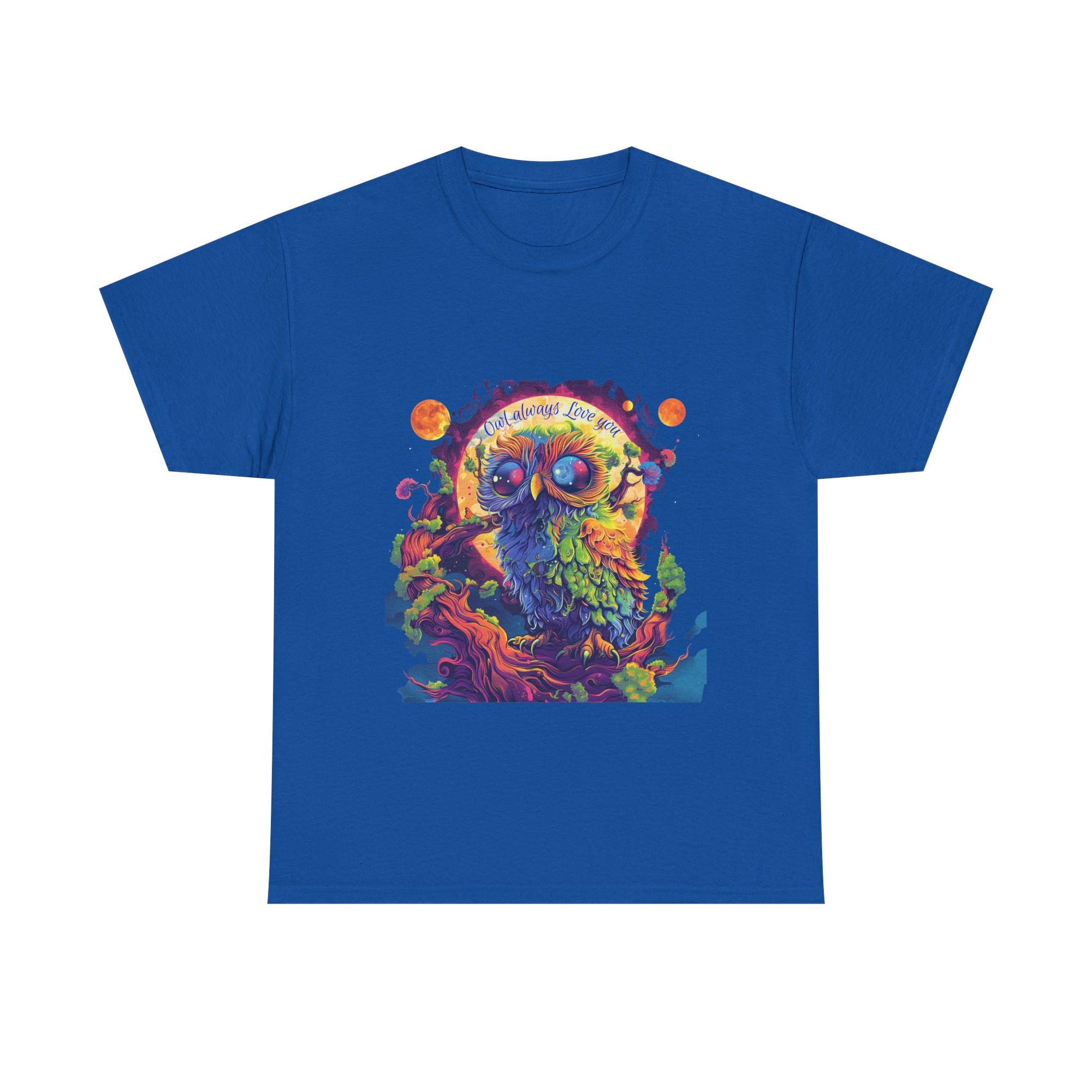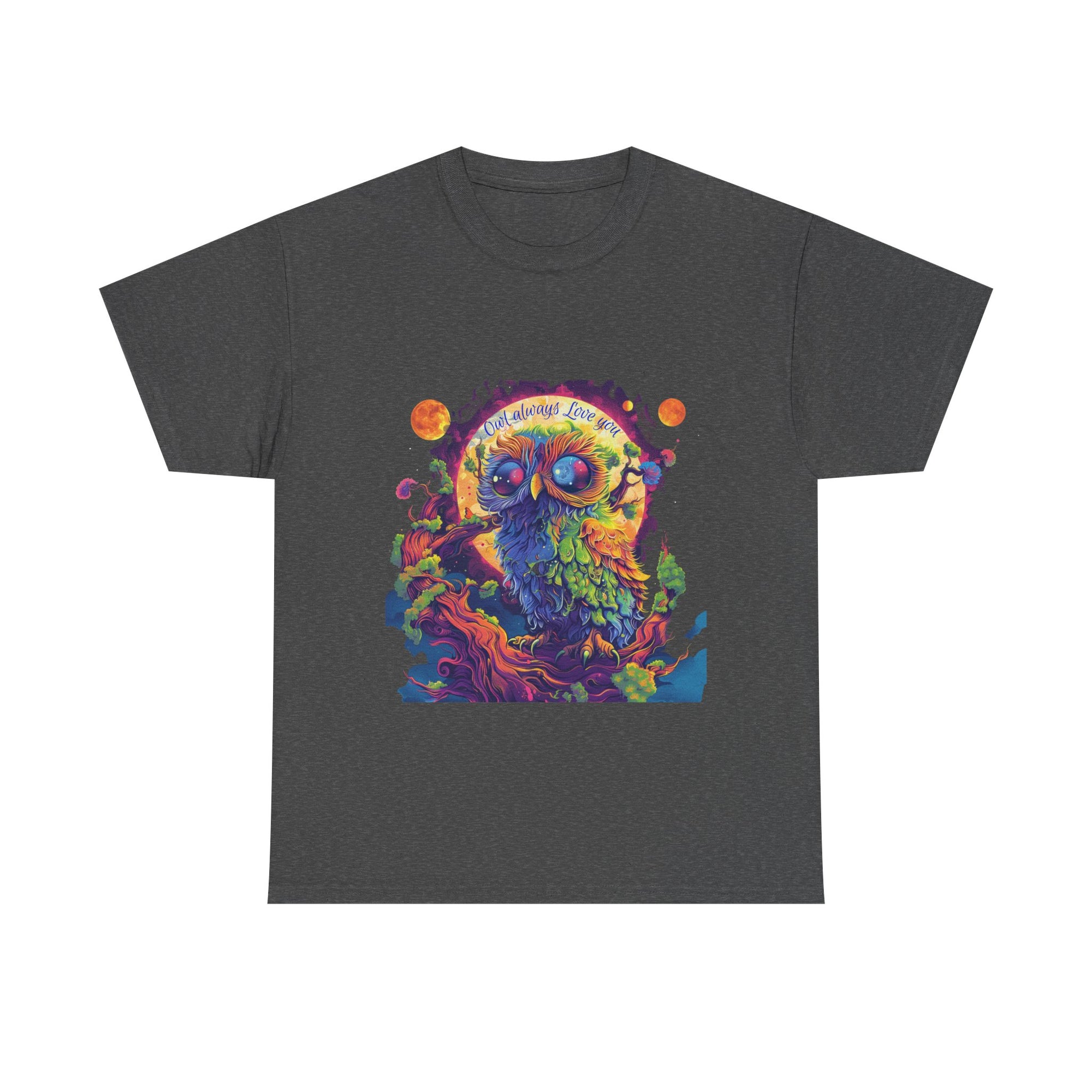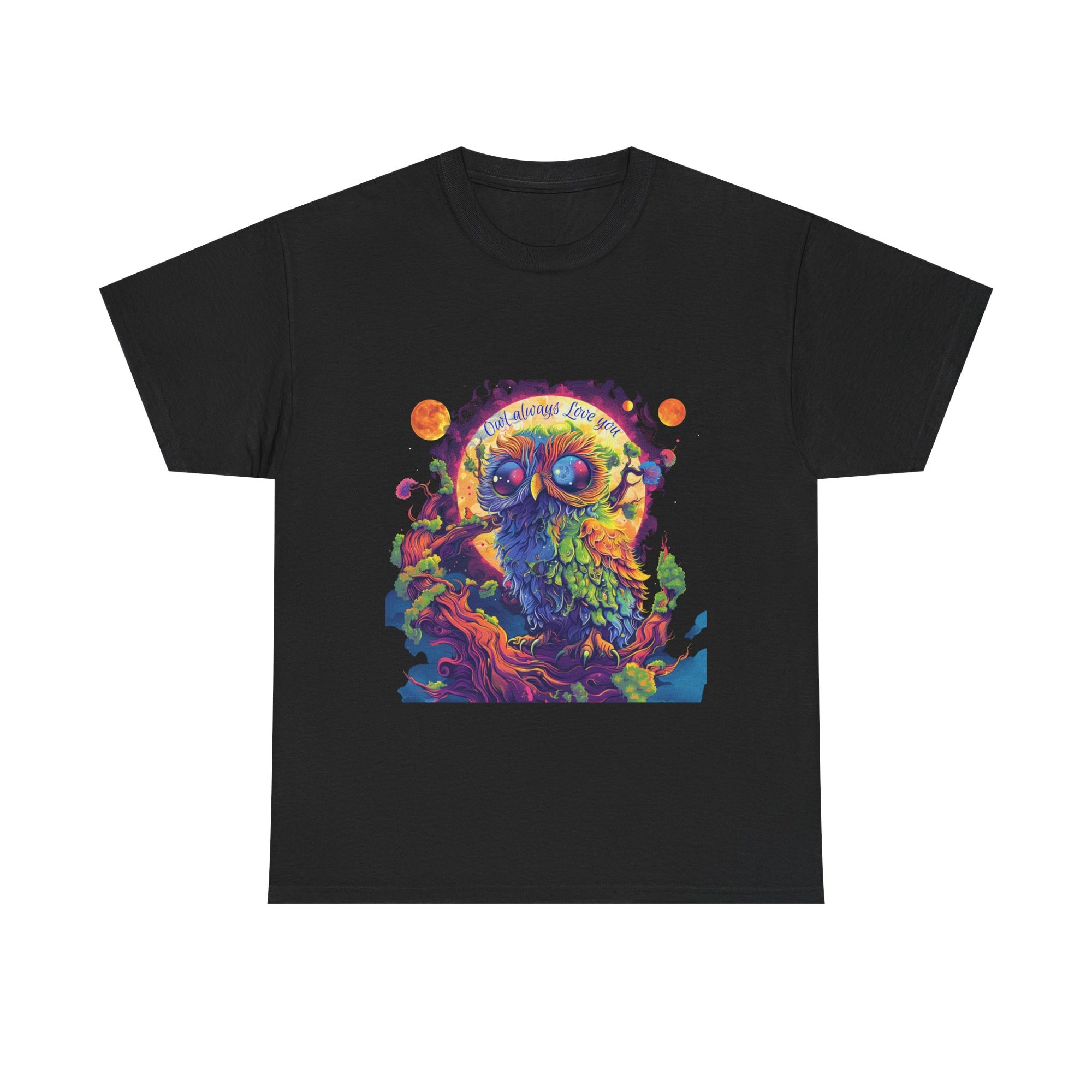 Unleash your love for animals with our charming "Owl Always Love You" t-shirt. Featuring an intricate design of an adorable owl, this shirt is perfect for nature enthusiasts and animal lovers alike. The owl is very intricately illustrated, creating a captivating visual experience that will surely make heads turn.